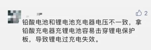 网友:锂电池和铅电池还是有区别的,锂电池还需配备专用充电器的,错了也会出事故的!