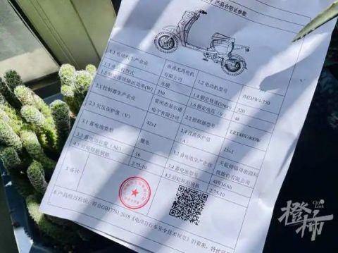 市场监管局执法人员说,这次抽检,将带回整车和电池,交给第三方进行检测。另外会检查各零部件是否与3C证书上一致。检测结果后续会公布。