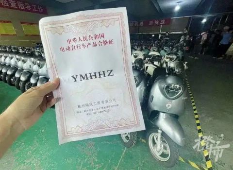 当我们进入一个经营店购买一款新电动车时,电池和车身是分开的,一般车主会现场装在一起。这个时候,消费者如何辨别是否为原装电池?该负责人说,将电池与3c证书核对,一致即可。