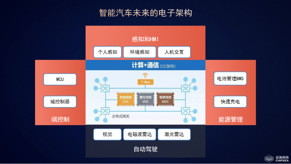 从智能终端的层面来看,要通过感知和计算实现更好的智能化,例如雨刷、空调、车灯、悬架等功能的升级;与此同时,汽车中全新的OS、HMI和车联网也是未来智能终端的发展方向。