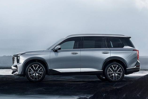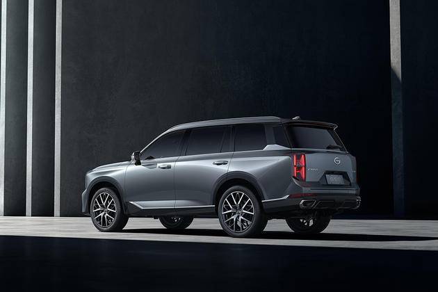 车身侧面车顶依旧采用平直的过渡,但针对BCD柱进行了隐藏式熏黑处理,营造出悬浮式车顶的设计,同时也增加了车身的整体感。尺寸方面,全新传祺GS8的长宽高分别为4980/1950/1780mm,轴距相比现款车型更是加长了120mm,达到了2920mm。车身腰线设计力量感十足,前后翼子板部分略微突出增加了一定的越野气势,搭配双五辐式轮圈,看起来霸气十足。