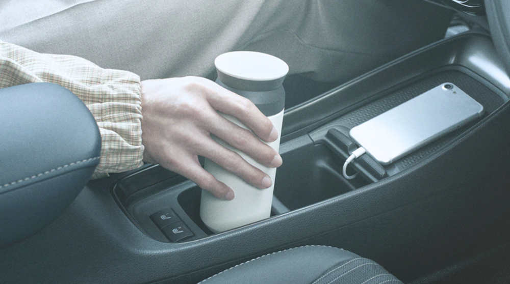 中间的通道功能很丰富,可以看到专门设计了一个放手机的位置,充电的时候还能将线缆收纳起来。此外还有两个杯架,一组座椅加热按钮。