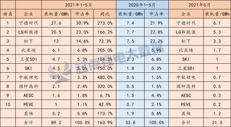 这就意味着,在未来一段时期内,韩国电池厂商将一直成为宁德时代最强大的对手。而在全球动力电池前三名当中,日本松下的实力也不容小觑。在今年1-5月装车量排行榜中,松下以14.6%的市场份额稳居第三,仅次于宁德时代和LG能源。