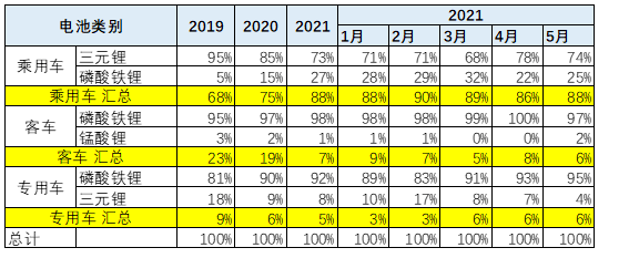 现在新能源汽车已经成为主力车型了,对于我们国内汽车市场来说,甚至前段时间还出现了电池荒的现象,连小鹏汽车的CEO都蹲点一个多星期,就是为了能够尽快的得到电池。而且,根据崔东树个人测算,5月份新能源汽车的产量是20.2万台,同比增长169%,电池装机总电量约980万度,同比增长179%。2021年1~5月份乘用车电池的需求是4,064万度,同比增长了217%。这也说明,虽然三元锂电池依然是发展的趋势,但从销量上面来看,磷酸铁锂电池。已经恢复至35%,相对来说比较稳定。