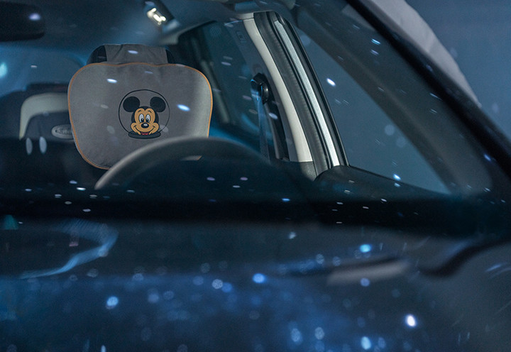 来到内饰,新车内饰延续畅巡的现有设计,并对内饰材质进行了升级,方向盘和仪表台中间部分由米/深灰色的Alcantara材质包裹,整体灰色与黑色搭配,更加符合车辆主题,同时也提升了整体质感。当然,在米奇太空版的车内少不了宇航员米奇的徽标,内置车机升级为太空米奇图标,并且座椅头枕也绣上了米奇的图标。