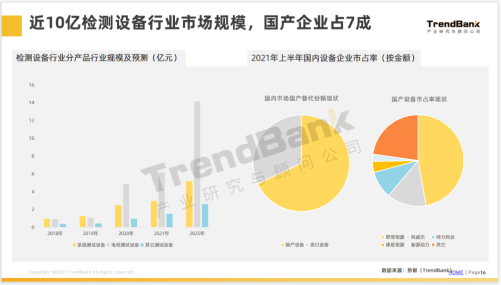 测试设备行业市场2021年上半年国内市场规模近10亿,国产企业份额占据7成左右,群翌能源、科威尔分别位列市场第一第二。