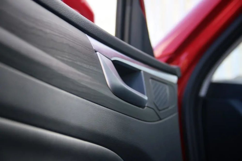 而除了座椅采用皮质材质外,在门板上、中控台表面也都大量运用了皮质材质,而细节上缝线的处理也进一步提升了整体内饰的质感。