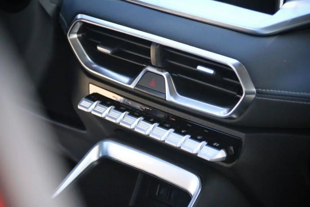 首先,炫界Pro的多功能方向盘采用了时尚的双辐式设计,同时在空调出风口、挡把以及门板和中控台区域都大量运用了镀铬饰条,提升了档次。另外,中控中央的空调出风口下方还设置了类似于飞机拨杆的镀铬按键,在此可以对空调系统进行控制。