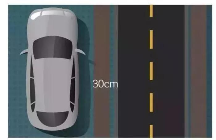 最后一步:到固定位置“靠边停车”,这里比较难的是:和马路牙子之间超过30厘米会扣分!