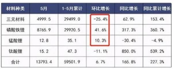 2021年5月的一份电池产量数据图便能看到,磷酸铁锂的电池产量大增,这也表明了车企的选择。