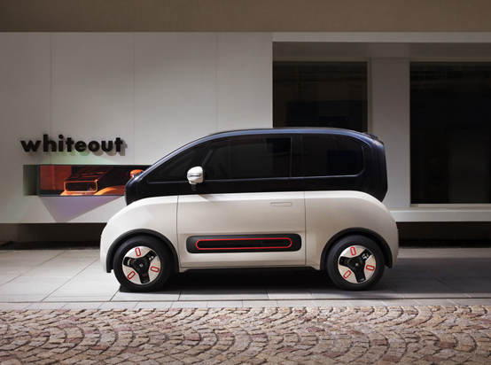 来到侧面,一眼就能看到悬浮式太空舱,上层与下层均采用相对圆润的设计,下层的设计主要集中在双门部分,比方像贯穿式的双高腰线设计,隐藏式门把手,还有镶嵌在车门下方的“回”字造型,带来科幻感的基础上带来很高的辨识度。尾部,该车采用平切式的设计,后挡风玻璃表层也镶嵌对称式装饰条,后备厢门下沿整体内凹,使得下方的保险杠整体超出车身,使得小小的车身也能具备沉稳性。