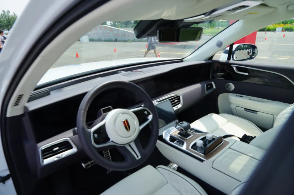 刹车方面,制动踏板的回馈里稍微重了一点,制动力上来比较快、线性,但是车身动作就多了一些,并不影响安全停稳。新车有5种动能回收力度级别,为低、较低、标准、较高、高,会有一点复杂。而这些动能回收力度分级之间的差异不大,松开加速踏板后车辆的减速度都不明显。这一点希望后期红旗能优化下,电车这一点相对容易很多。