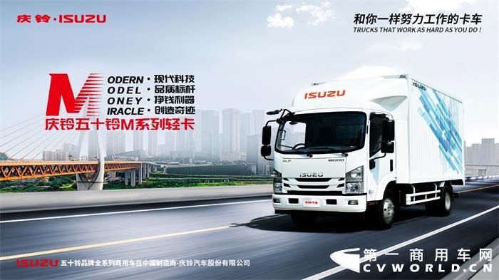 能在国六开局就有如此突出表现,究其原因,除了庆铃五十铃过硬的国六技术储备以外,还离不开M系列轻卡本身所具备的技术优势。庆铃五十铃M系列“高效能轻卡”具备了高可靠、高安全、高科技、效率高、效益高、更能装、更能跑、更能干、更能享等核心优势,既传承五十铃百年技术质量精髓,又融合时下流行元素和高科技配置,如智能油耗系统、智能网联系统、全液晶仪表、行车电脑、智能人机界面等技术配置,让用户轻松管理卡车运输实时动态,也让M系列轻卡成为集成轻卡现代科技(Modern)的代表产品。