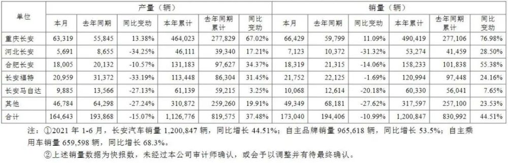 从日前长安汽车披露的销量数据来看,长安汽车1—6月累计销量来到了120.08万辆,与此同时实现了44.5%的同比增长。