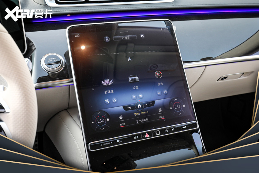 使用OLED屏幕的12.8英寸中央液晶屏,画质和显示效果都很细腻。屏幕支持多点触控和手势操作,空调、多媒体和导航等设置都集成在了中控屏内部,操作区域很清晰,也很好上手。