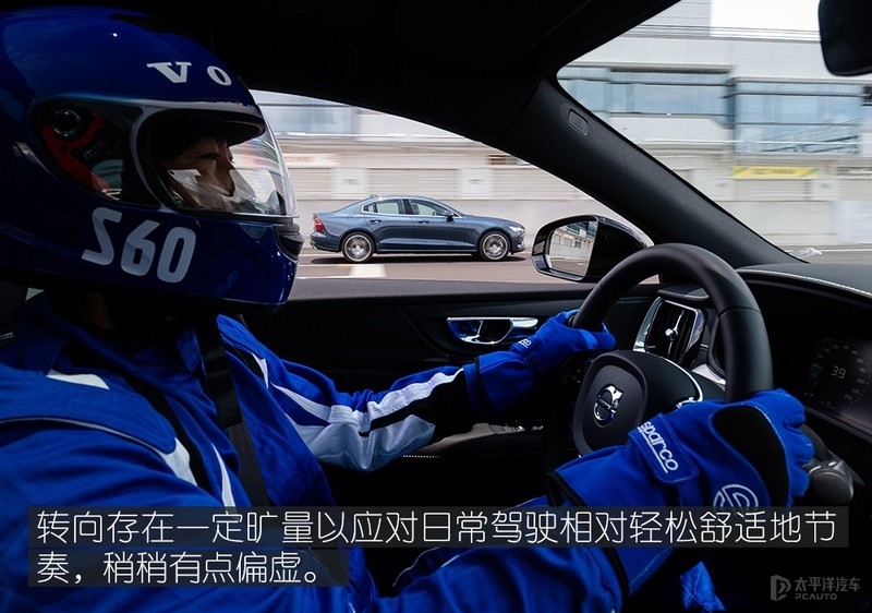 而当速度起来后,电机输出辅助的感觉弱了很多,不会像很多HEV车型一样全速度段的持续动力补充,但好在S60本身配备的2.0T发动机动力输出足够强劲,赛道驾驶动力几乎是随踩随有,对驾驶节奏的掌控很到位,畅顺是其最大的特点。