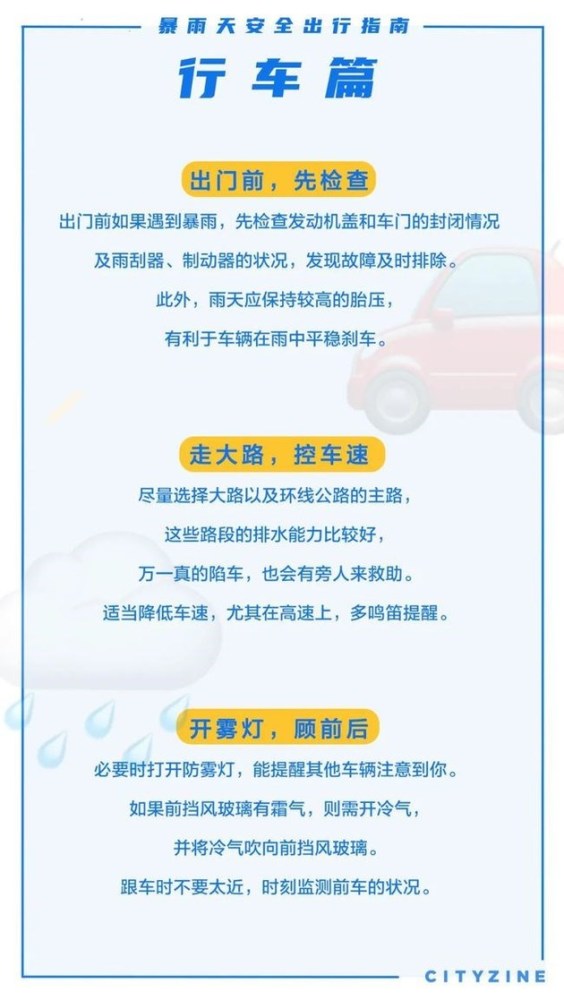 暴雨天安全出行指南 陈嫣 2021-07-26 04:32:01 141 0 遭遇极端暴雨天气,正在外出的你,应该如何应对,收下下面这份暴雨天安全出行指南! 本文地址: http://www.cgoyu.com/qcxx/10728.html 版权声明:本文发布于橙果余汽车网 内容均来源于互联网 如有侵权联系删除