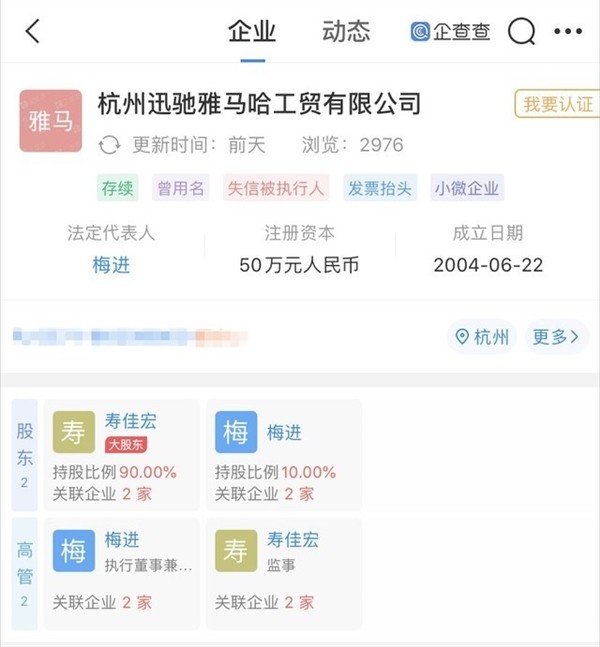 此雅马哈并非我们大众熟知的那个“雅马哈”,而是国内的另外一个不知名的小公司,根据企查查APP显示,涉事电动车生产公司杭州迅驰雅马哈工贸有限公司,成立于2004年。