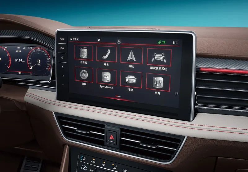 车机系统则换装了大众燃油版车型目前最新的系统,这套系统已经率先在斯柯达明锐Pro上使用,支持语音交互、手势识别和触控操作,优点是尺寸更大功能更丰富,缺点则是反应速度还有提升空间。