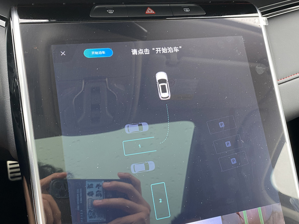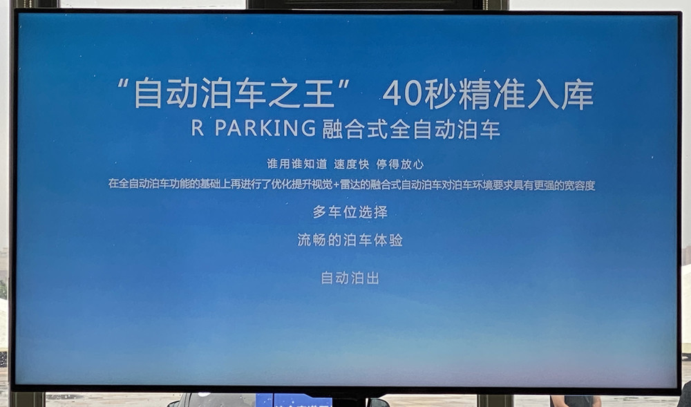 而此次Marvel R的自动泊车就完成打消上述对自动泊车不好的印象,无论画线与否,它都能泊入泊出。在未画线的地方,只要识别出两台车之间的空隙,在中控屏上就会出现P的车位框,踩住刹车按下开始泊车,接下来的一切操作都交给它就好,精准入库只需40秒。