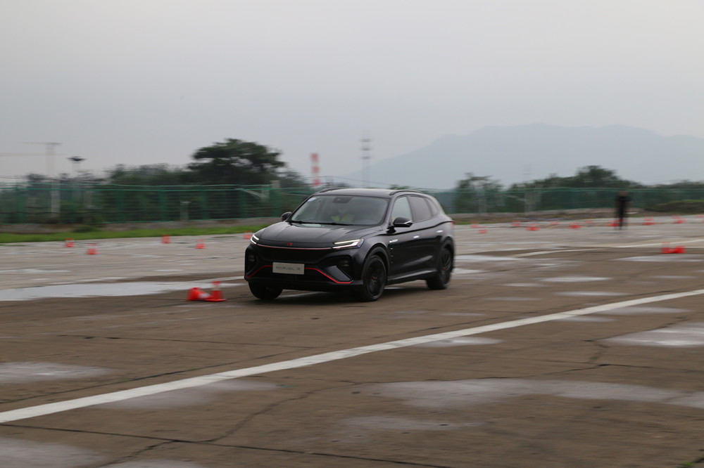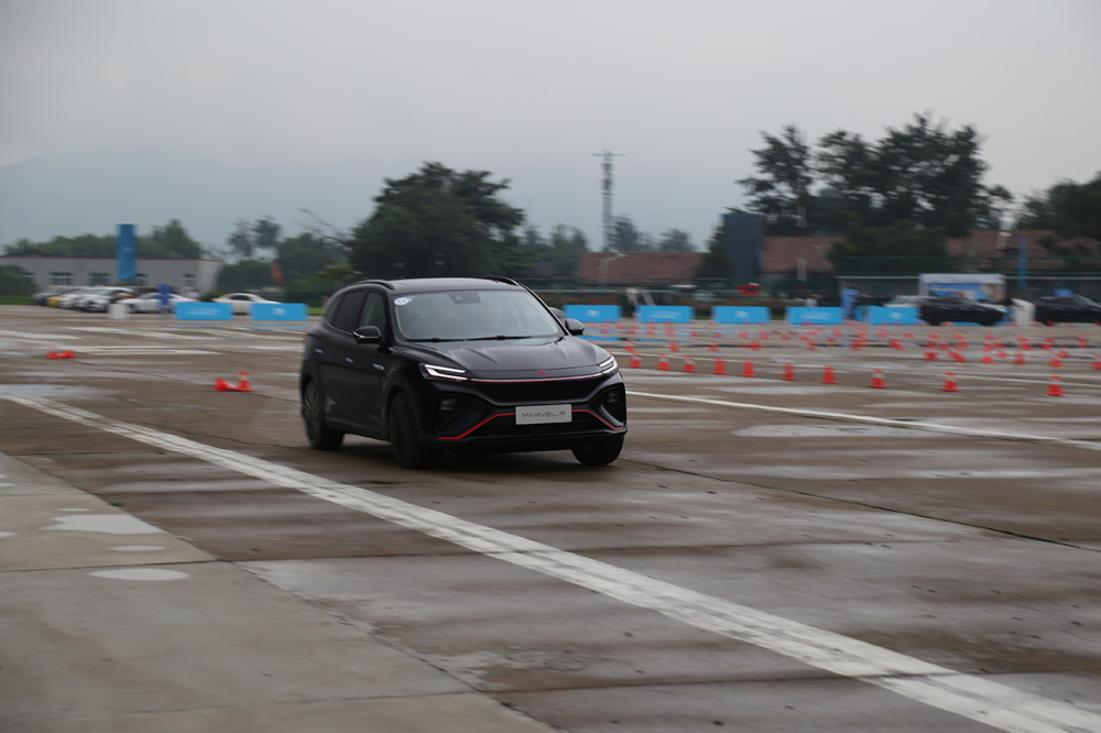 0-100公里/小时的全力加速给我留下了很深刻的印象,体验车型为Marvel R的四驱版本。因为场地湿滑,所以我并没有地板电,仅踩下2/3的深度,推背感立刻有,我被狠狠的按在座椅上,眩晕感就上来了。我曾体验过特斯拉Model 3 Performance的加速能力,有一说一,Marvel R 4.8秒的破百能力肯定不及特斯拉Model 3 Performance,但实际体感可以负责任的说达到了90%的相似度。