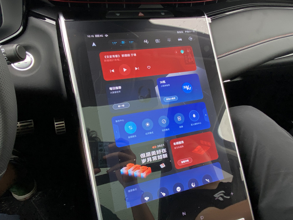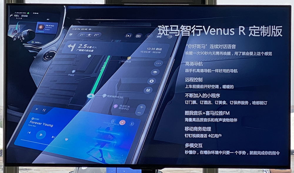 进入车内,R专属两幅方向盘、19.4英寸中控屏、隐藏式空调出风口、64色氛围灯烘托了MARVEL R的智能科技座舱。19.4英寸的中控屏要着重说下,搭载斑马Venus R定制版的系统,支持连续对话的语音识别控制、远程控制、导航以及小程序等功能。同时,在此基础上还融入了手势控制,通过车内的摄像头捕捉肢体动作,控制风量、音量等功能通过一个手势就可实现。
