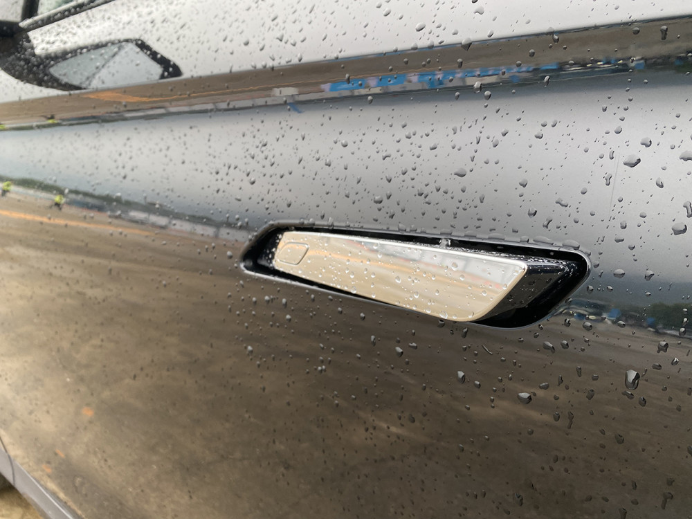 接下来是绕桩体验,因为场地下雨以及是水泥地的缘故,即便是配备了米其林的浩悦4轮胎,依旧是有点滑。本着安全起见,绕桩的速度并不是很快,没有将车辆推到极限。在驾驶的过程中,车辆重心转移的速度很快,而且可以明显感受到ESP在全力以赴,虽然会有打滑的情况,但车辆依旧是按照我的想法在前进。车辆的指向性不错,转向可以用精准来形容。在运动模式下转向的厚重感不错,但手感偏沉,这时切换到舒适模式就没有问题啦。