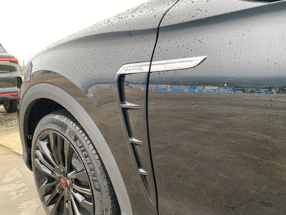 MARVEL R的尾部虽然没有前脸惊艳,但也不差事儿。箭翎元素的贯穿式尾灯点亮后效果不错。拍摄车辆为黑武士风格,除最低配车型以外,其他车型花2000元选择黑武士外观风格。所以,原本下方为镀铬装饰条的部位就被红色的装饰条所替代,增强了整车的运动氛围。