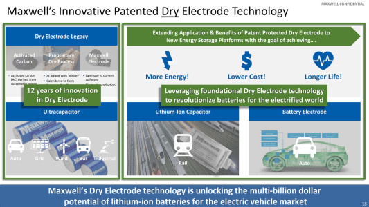 现在看来,特斯拉收购它的目的并不是在产品上使用Maxwell的电容技术,而特斯拉主要看中了Maxwell的干电极技术。