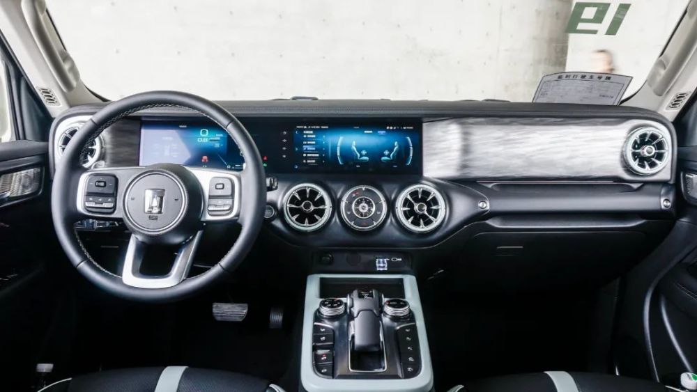 在内饰设计上,坦克300城市版与越野版几乎没有差别,都采用了12.3英寸仪表+12.3英寸中控屏幕,以及飞机推杆式挡把的设计。对于一台20万元的越野车来说,这套内饰的精致感已经相当不错了。