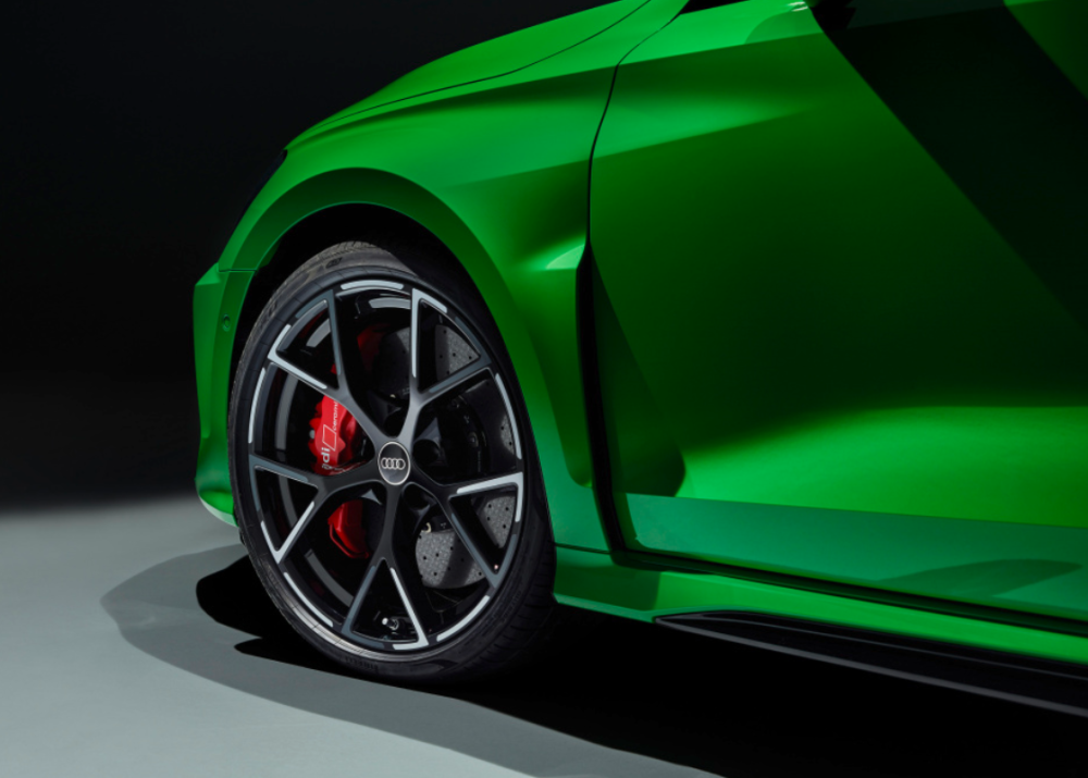 奥迪RS 3的具体长宽高尺寸分别是4479×1902×1399毫米,轴距是2628毫米。因为采用的是紧凑型的三厢版车型,所以从视觉效果上来看,它的车身侧面非常顺眼,腰线也十分锋利,贯穿了整个车身。再搭配上红色的卡钳和19英寸的五辐式轮圈,运动感极强。