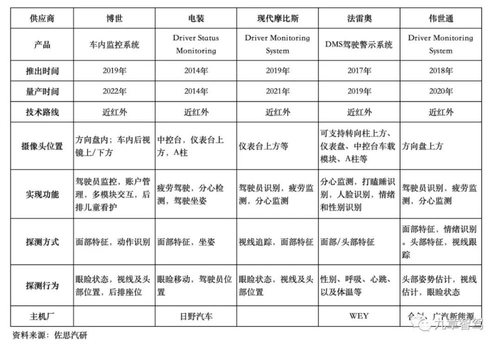 (图片来源:智车行家:DMS驾驶员监测系统技术专题报告)