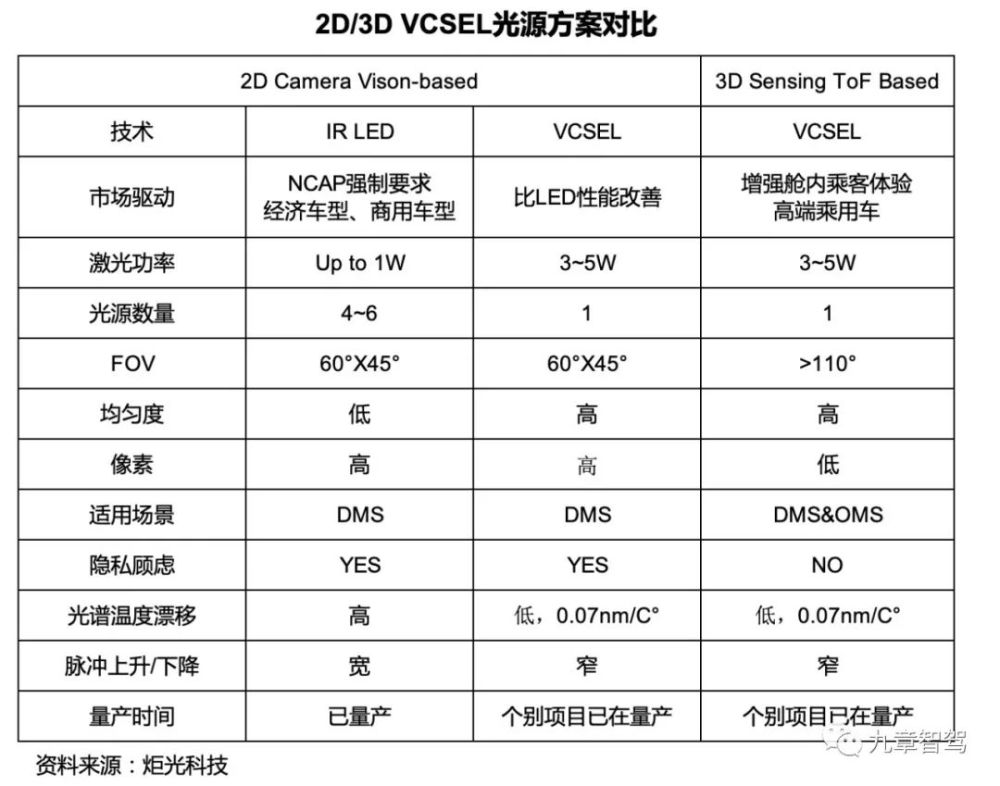 LED红外技术成本低,但是光源比较分散,车企和供应商不断探索新的光源技术。比如采用VCSEL光源发射器。