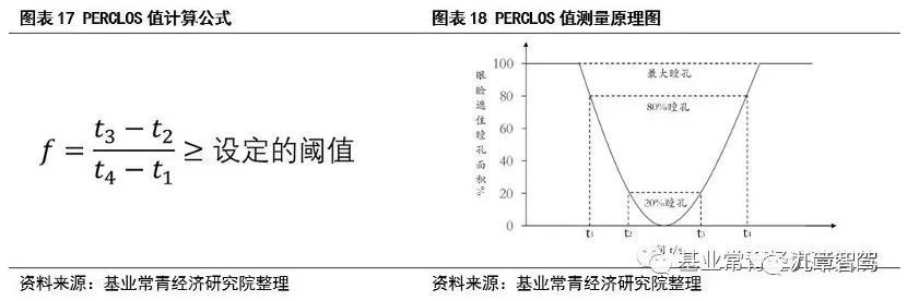 PERCLOS(Percent Eye Closure)指在一段时间内眼睛闭合时所占的时间比例,P80指眼睑遮住瞳孔的面积超过80%就计为眼睛闭合,PERCLOS P80被认为最能反映人的疲劳程度。