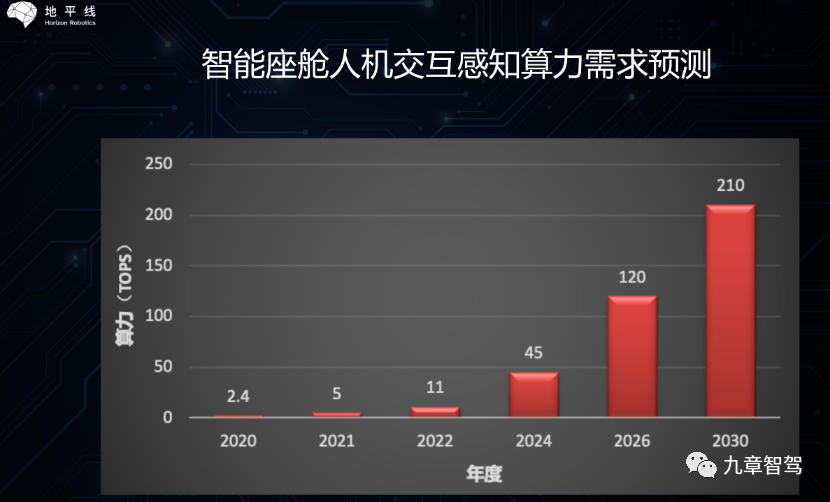 根据地平线的预估,随着多种模态技术的融合与发展,智能座舱人机交互感知算力需求呈指数级增长,预计到2026年,所需将超过100 Tops。
