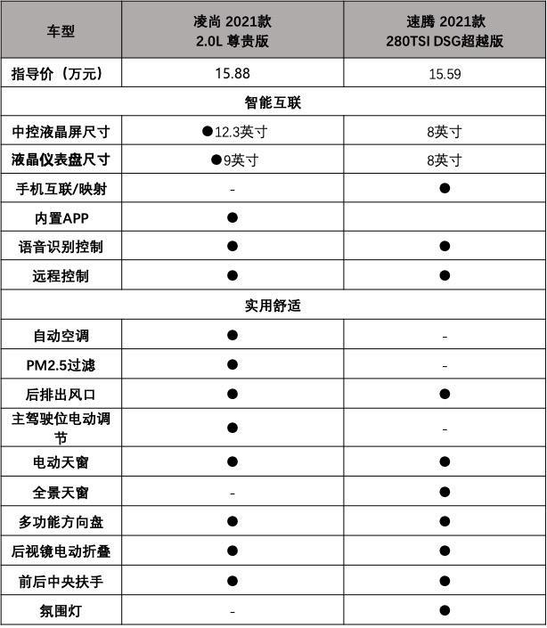 凌尚全系仅推出了两款车型,差价为1万元,整体配置水平很高。从上面表格对比中可以发现,价格相近的前提下,凌尚的智能化程度比速腾更强大,尺寸更大的双液晶屏视觉效果更出众,配置了丰云行智能互联系统,内置导航。QQ音乐、喜马拉雅FM等APP,支持远程启动空调、寻车等功能,迎合当下年轻用户对智能的刚需。速腾在这块则略显单薄,好在支持苹果、安卓手机投屏,不至于落后太多。