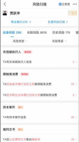 企查查信息显示,截至目前,贾跃亭已存在多条被执行人信息,被执行总金额超41亿元。