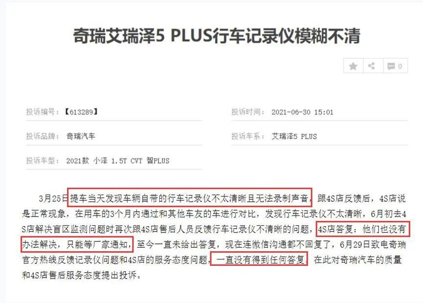 行车记录仪不清楚这个事情说大不大,说小也不小,在没出事故的情况下它也没有什么特别的作用,但是真正出现事故了它也确实是不可缺少的视频证据,但是面对如此多的投诉奇瑞成家到目前也没有给出具体的解决方案。