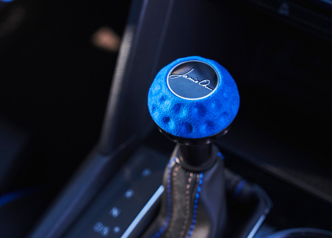 与此同时,内饰也有大量蓝色元素相呼应,除了蓝黑拼接运动座椅,类似手动档的档把也是十分吸睛。