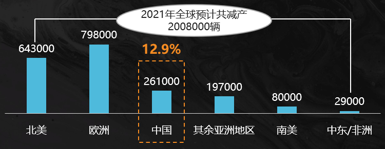 因疫情影响,“缺芯”对全球车企造成了大幅冲击。据中汽中心预测,2021年全球车企因芯片问题共计将减产200万台以上。这其中,中国主机厂占比12.9%,减产超过26万台。