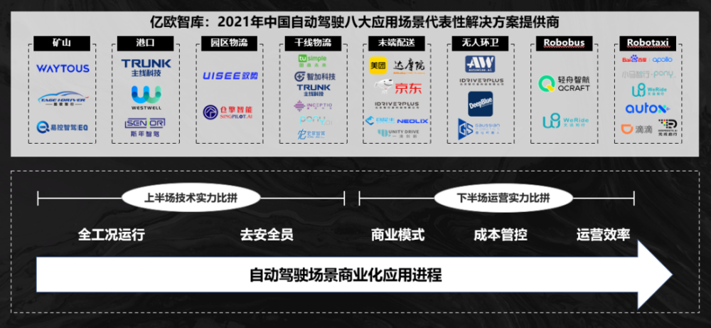 在自动化驾驶的上半场,由于技术进程的发展以及配套政策的缺失,更多自动驾驶解决方案供应商会选择在乘用车之外其他限定场景去做更多商业化应用,例如物流,配送,出行服务等方面。这其中,它们面对的最大的挑战是如何实现在限定场景中自动驾驶的运行以及如何实现去安全员。