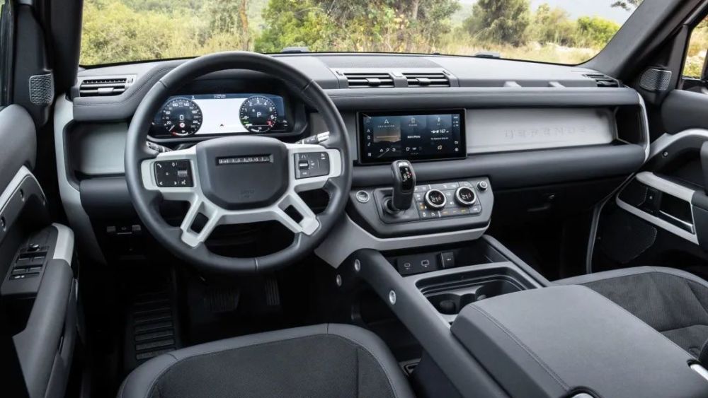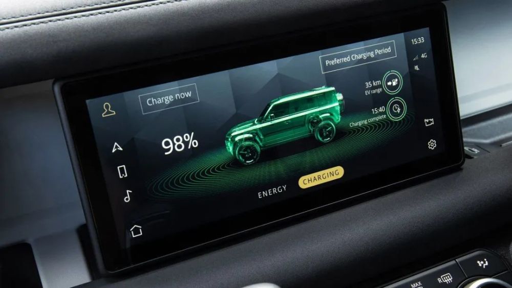 当你坐在卫士P400e的车厢内时,几乎没有迹象表明你正在驾驶一辆插电混合动力车,和普通版车型找不出任何区别。仅能从液晶仪表盘中的功率和充电表,以中控台上的EV模式按钮,找到一些混动车的标志。