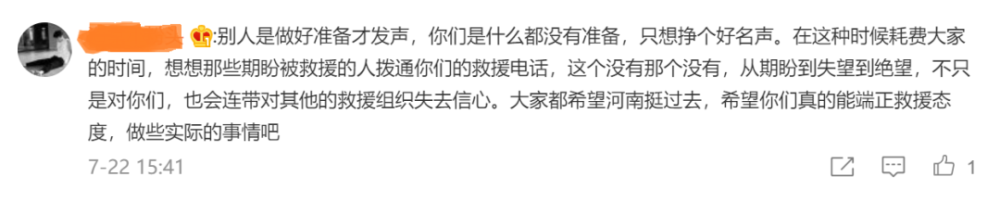但是事情急转直下,当日14时23分,有线上志愿者在该官方博文下留言,称客服表示未收到救援通知,并回复不能提供物资供应,至此舆论翻腾。