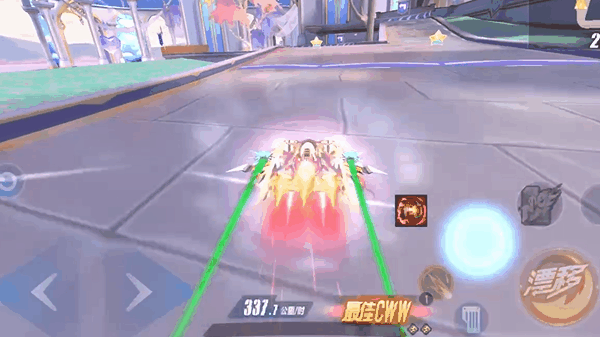 这个捷径有一定难度,星星形状为前后窄、左右长,发射方向为向右,所以在到达星星左侧时就需要将车头拉向右,期间可以刹车或侧身漂移调整控制出弯车头。