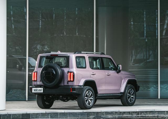 首先就是在造型设计方面,坦克300城市版基本延续了家族式的设计语言,前脸采用了三横幅式镀铬进气格栅,并换装了全新的车标LOGO,加上两侧经典复古的圆形大灯,以及引擎盖上较高的隆起,从而给人一种霸气硬朗的视觉感受。此次还新增了“时尚佳人粉”以及“牛油果绿”配色,侧面车身线条非常的简洁,车顶的镀铬行李架,加上下方多幅式的轮毂造型,一定程度上提升了整体的越野气息。