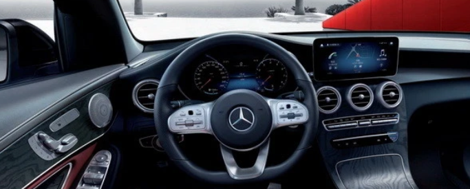 打开车门之后,GLC 300 4MAG Line内饰上采用了T字形对称式的设计,让整个中控台显得更加简洁大气。全液晶的仪表盘,悬浮式的中控大屏,有着满满的科技感。再加上三辐式多功能的方向盘,增强了整个车内的档次感。另外,它能用OTA进行升级,并且还能够语音识别。