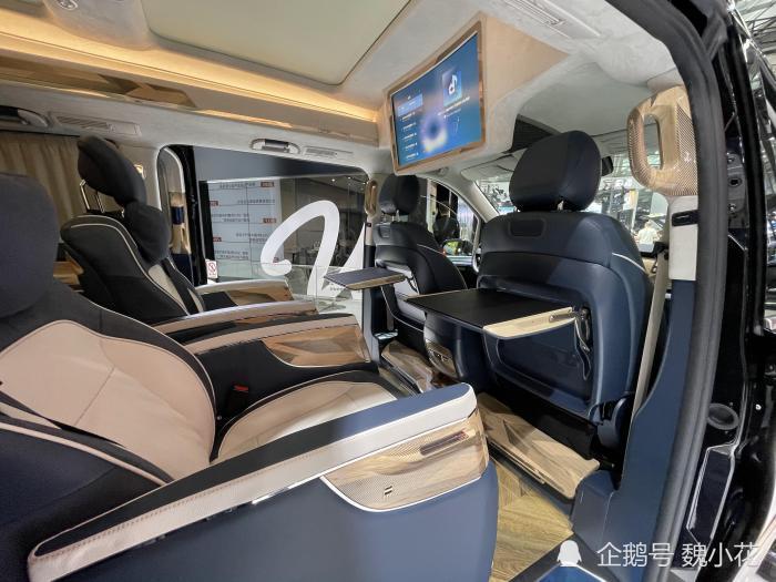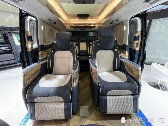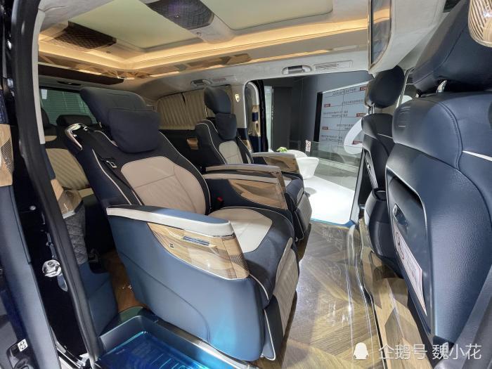 尺寸上,新车的长宽高分别为5370mm×1958mm×2060mm,轴距达到了3430mm。新车在侧面上最大的改变就是轮毂的设计更加新颖。当然了和外观比起来,它的内饰才是这款车最大的亮点。根据前方得到的消息,这款车内部的豪华感完全可以媲美城堡。定制版升级了流线型海豚高顶、墨蓝色真皮+米白色真皮+拉丝木纹材质组成的内饰、全电动两节腿托座椅(通风、加热、气囊按摩、电动头枕)、第三排电动三人座椅(电动控制、可平躺成床)以及私密窗帘柚木地板,这一系列的操作已将将对手远远在甩在了身后。