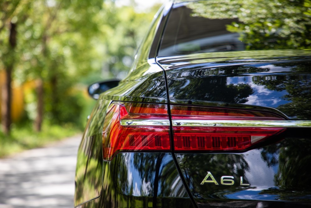 A6L尾部最突出的自然就是尾灯了,灯腔内层次分明 – 或者说纹路清晰,而且点亮之后具有极高的辨识度,无愧于“灯厂”之名。奥迪Logo下方的银色饰条又与修长的尾灯相连,增加了视觉宽度,后保险杠区域雾灯呈嵌入式存在,双边出的排气又使整个车看起来充满了运动 – Sport感!虽然说奥迪将很多车的Logo通过熏黑设计来打造运动感,但A6L是用的镀铬设计,经典也恰到好处。
