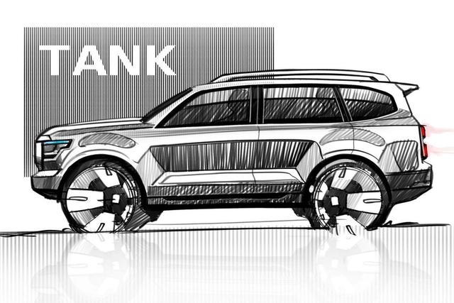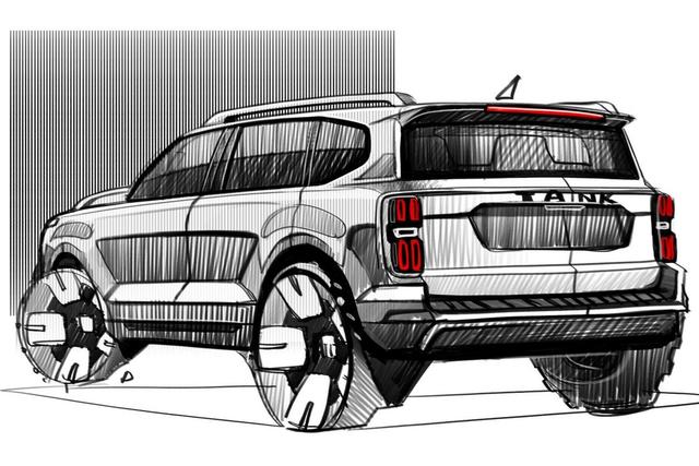 定位在坦克800之下的坦克600,与大哥一样,走的是商务豪华SUV路线,但从官方近日发布的设计手稿来看,坦克600似乎并不甘于只像奥迪Q7、奔驰GLE级那样只在城市里开一开。