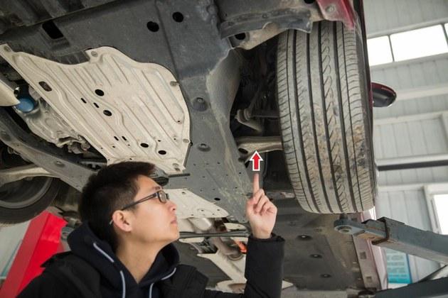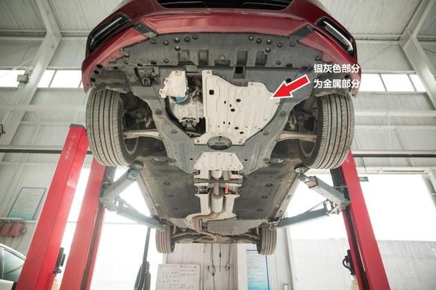 随着第十代雅阁的逐渐升起,平整度极高、护板覆盖范围极广的底盘也逐渐映入眼帘。任先生告诉我们,十代雅阁的发动机舱前方采用的是非金属护板,发动机舱下侧使用的则是金属防护,这样一来不但有利于散热,也可以很好的保护发动机免受石子飞溅对发动机造成的损害。大面积覆盖也改善了空气流动,使路噪得到了进一步降低。